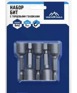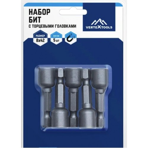 Набор бит с торц. головками vertextools 8х65 (БТ-8-65)