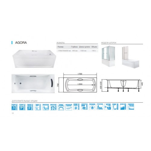 Ванна "AGORA" 170*75, код ТН ВЭД 3922100000