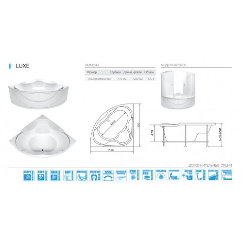 Ванна "Luxe" 155х155 Гидромассаж