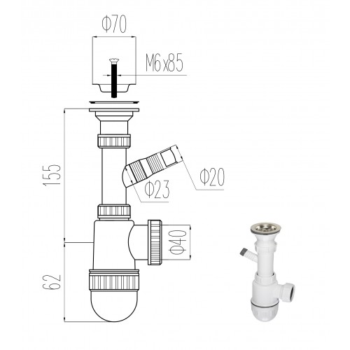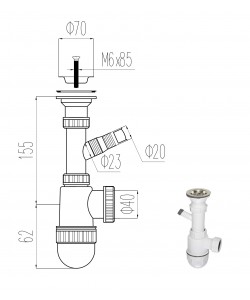 309 Сифон"ПРОФИ" н/ж70мм, с отв. д/стир.маш. (1 1/2- 40)
