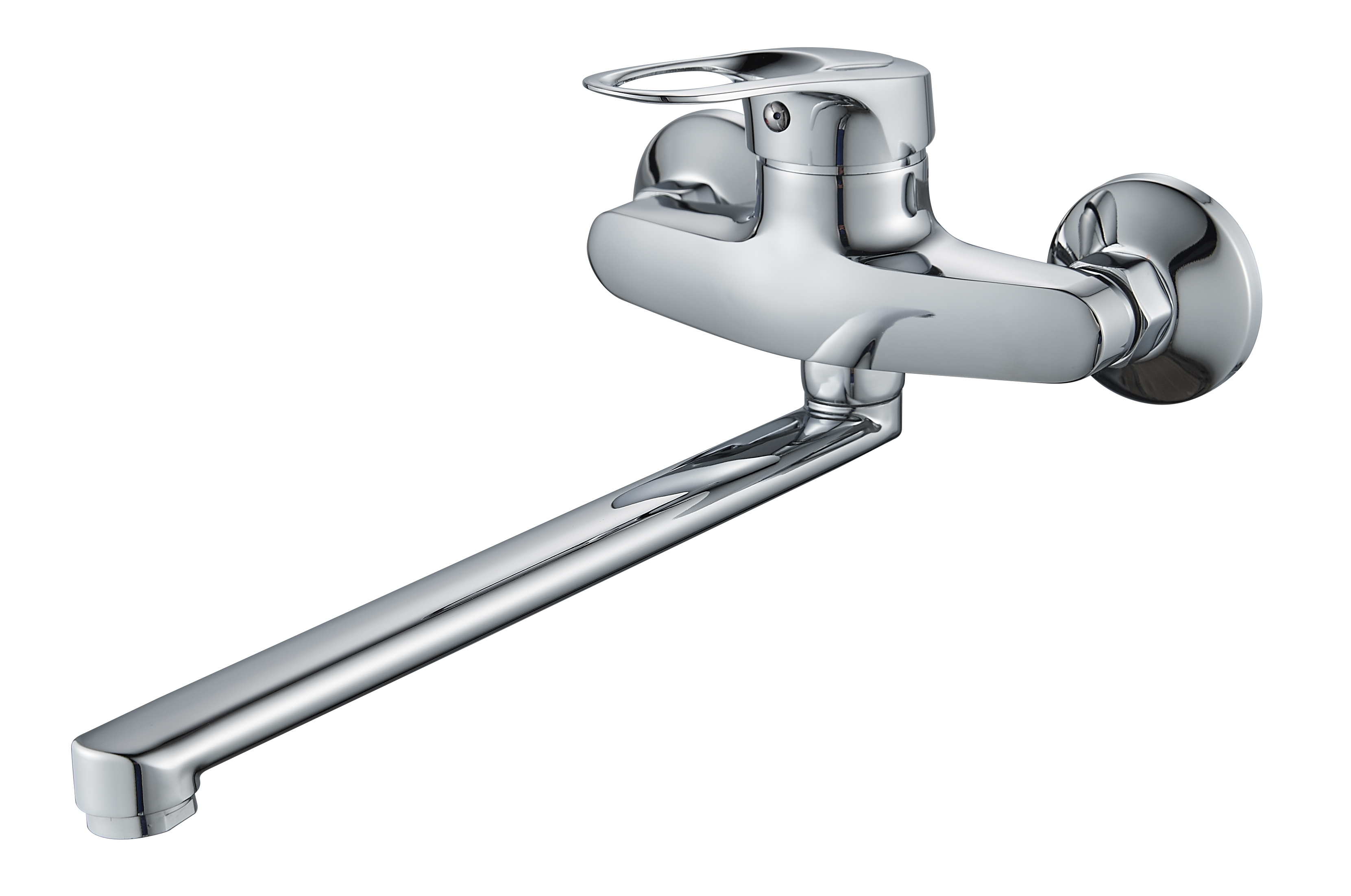 Смеситель ALOUTE A3153 — это однорычажная модель для кухни с поворотным изливом, предназначенная для настенного монтажа. Корпус изготовлен из алюминия с хромированным покрытием.