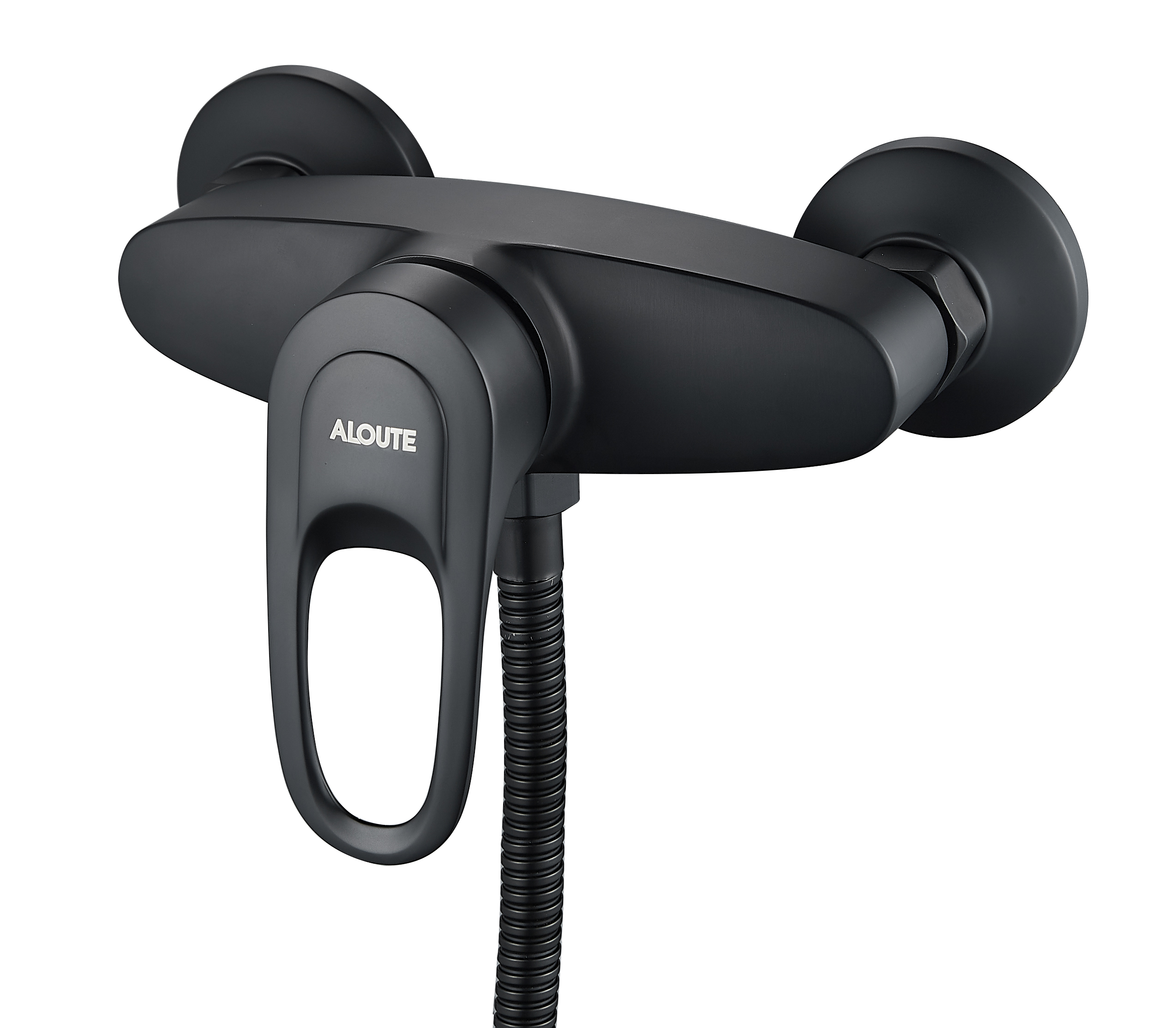 Смеситель ALOUTE A3104H — это однорычажная модель для душа без излива, предназначенная для настенного монтажа. Он изготовлен из алюминия с матовым чёрным покрытием, что обеспечивает современный внешний вид и устойчивость к коррозии.
